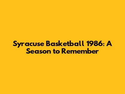 Syracuse Basketball 1986: A Season To Remember