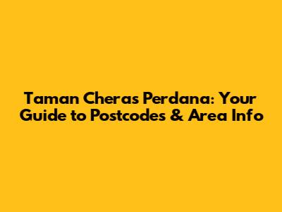 Hey there, future residents, curious explorers, or perhaps just someone trying to send a parcel! If you're looking for detailed information about Taman Cheras Perdana and its ever-so-important postcode, you've landed in the right spot. We're going to dive deep into what makes this vibrant community tick, why knowing its postcode is super crucial, and what awesome things you can expect from living or visiting this dynamic part of Cheras. Forget those confusing searches; consider this your ultimate, friendly guide to everything Taman Cheras Perdana.