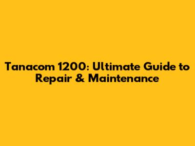 Tanacom 1200: Ultimate Guide To Repair & Maintenance