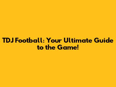 TDJ Football: Your Ultimate Guide To The Game!