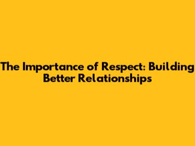 The Importance Of Respect: Building Better Relationships