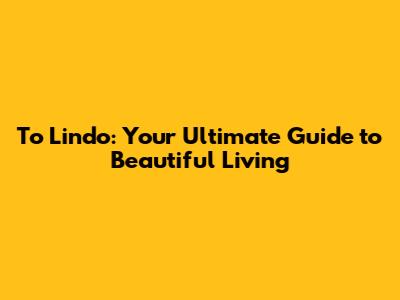 To Lindo: Your Ultimate Guide To Beautiful Living