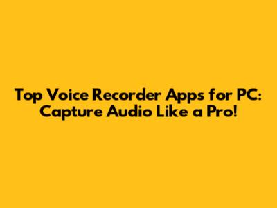 Top Voice Recorder Apps For PC: Capture Audio Like A Pro!