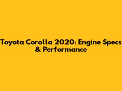 Toyota Corolla 2020: Engine Specs & Performance