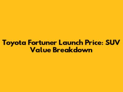 Toyota Fortuner Launch Price: SUV Value Breakdown