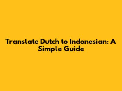 Translate Dutch To Indonesian: A Simple Guide