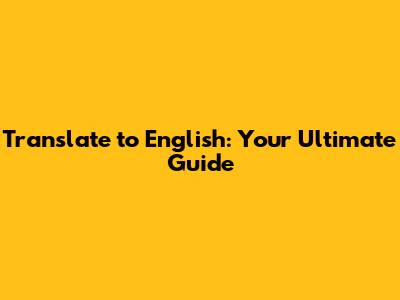 Translate To English: Your Ultimate Guide