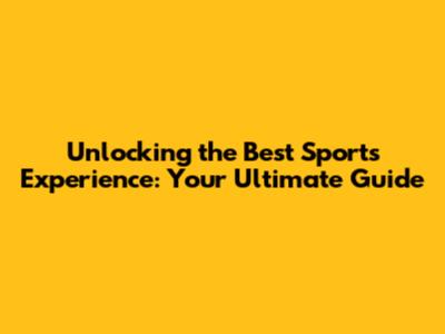 Unlocking The Best Sports Experience: Your Ultimate Guide