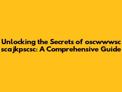 Unlocking The Secrets Of Oscwwwsc Scajkpscsc: A Comprehensive Guide