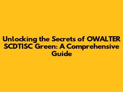 Unlocking The Secrets Of OWALTER SCDTISC Green: A Comprehensive Guide