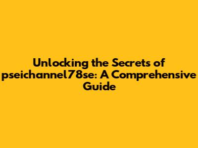 Unlocking The Secrets Of Pseichannel78se: A Comprehensive Guide