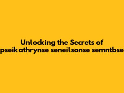 Unlocking The Secrets Of Pseikathrynse Seneilsonse Semntbse