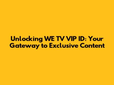 Unlocking WE TV VIP ID: Your Gateway To Exclusive Content