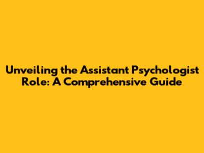 Unveiling The Assistant Psychologist Role: A Comprehensive Guide