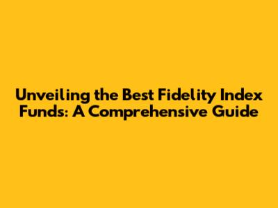 Unveiling The Best Fidelity Index Funds: A Comprehensive Guide