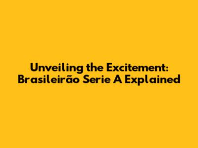 Unveiling The Excitement: Brasileirão Serie A Explained