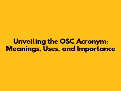 Unveiling The OSC Acronym: Meanings, Uses, And Importance