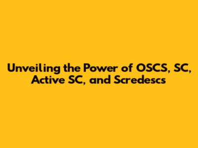 Unveiling The Power Of OSCS, SC, Active SC, And Scredescs