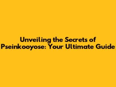 Unveiling The Secrets Of Pseinkooyose: Your Ultimate Guide