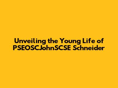 Unveiling The Young Life Of PSEOSCJohnSCSE Schneider