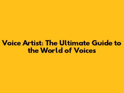 Voice Artist: The Ultimate Guide To The World Of Voices