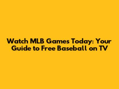 Watch MLB Games Today: Free TV Guide