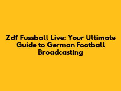 Zdf Fussball Live: Your Ultimate Guide to German Football Broadcasting